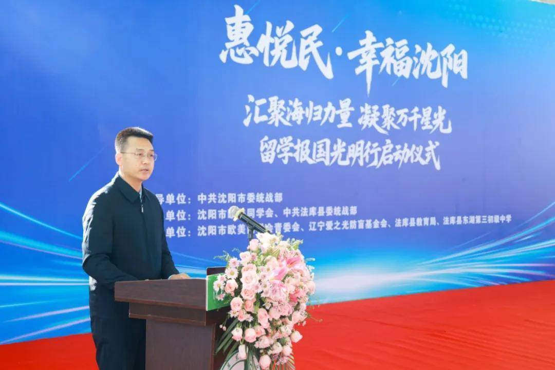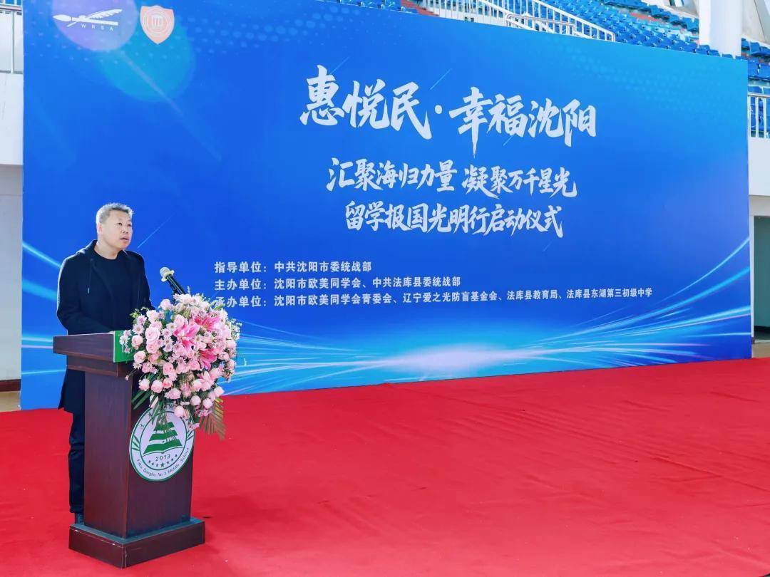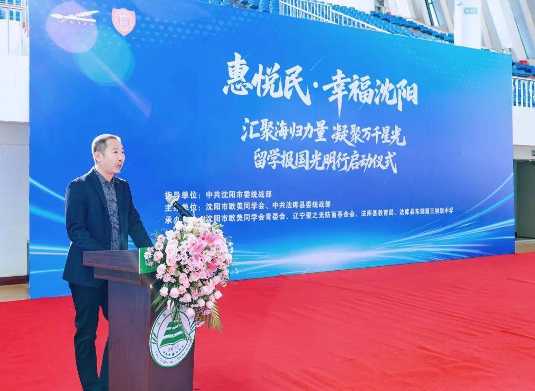 11月18日,由中共沈阳市委统战部指导,沈阳市欧美同学会、中共法库县委统战部主办,沈阳市欧美同学会青委会、辽宁爱之光防盲基金会、法库县教育局、法库县东湖第三初级中学联合承办的“惠悦民·幸福沈阳留学报国光明行”启动仪式在法库县东湖第三初级中学举行。