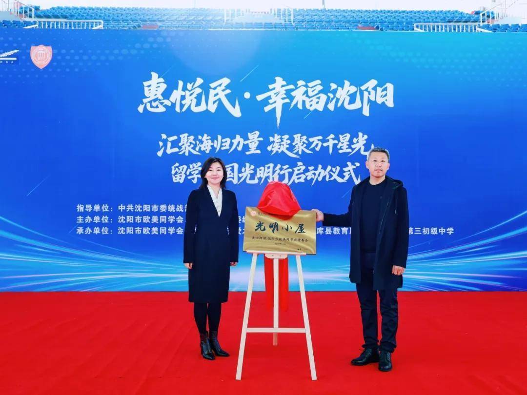 沈阳市委统战部副部长、市侨办主任、市欧美同学会秘书长杨晓鹏与法库县委常委、办公室主任、统战部部长崔伟共同为此次捐赠的“光明小屋”揭牌,将现场气氛推向高潮。
